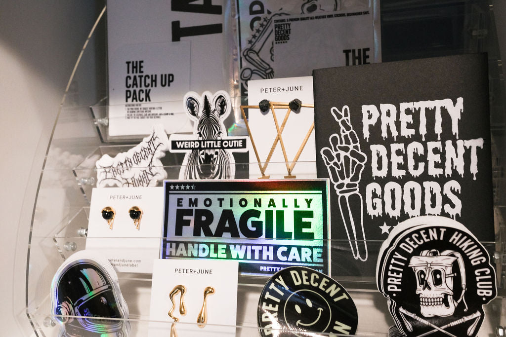 - PDG Originals Wholesale — Our in-house line of witty goods, available to shops that want personality on their shelves.